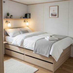 Beds with built-in drawers, under-bed storage bins, or loft-style beds can free up floor space.