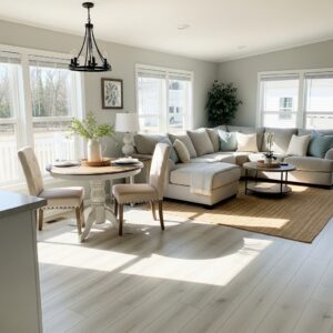 Open-concept layouts make a singlewide feel larger than it actually is.