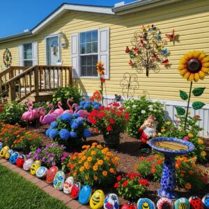 Metal wall hangings, whimsical garden statues, or painted rocks can create focal points that make your home unique.