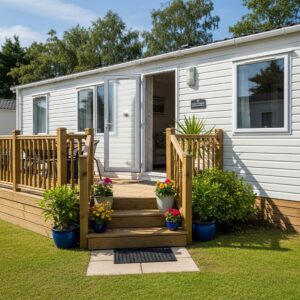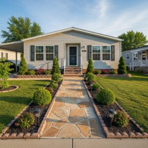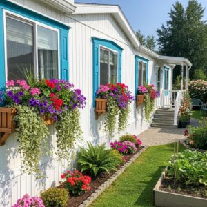 If your mobile home is elevated, adding steps or a small deck can make entrances safer and more attractive.