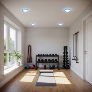 Proper lighting can dramatically improve a small gym’s appearance and mood.