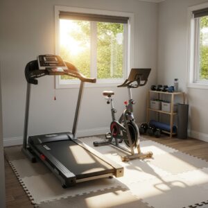 Adding a small floor mat or water station nearby ensures the area remains functional and comfortable for daily cardio routines.
