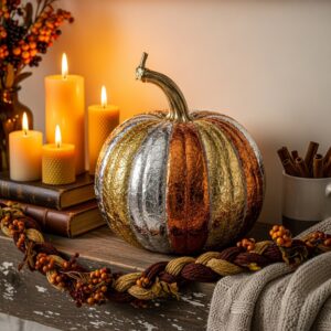 Gold, copper, or silver foils give your pumpkins a luxe finish that pairs beautifully with fall tablescapes.
