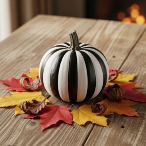 Painting thin or wide black-and-white stripes on a small pumpkin creates a timeless look that pairs beautifully with modern or farmhouse fall décor.