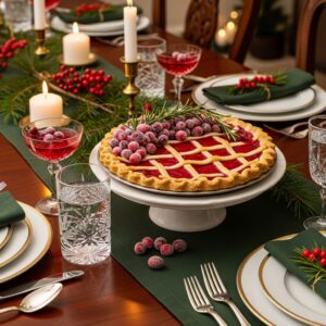 A tart, sweet cranberry-filled pie—beautiful and bold on the holiday table.