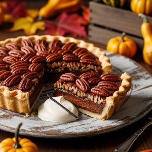 A decadent upgrade to classic pecan pie with a chocolate layer.