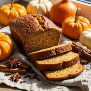 Moist and warmly spiced pumpkin loaf perfect for holiday snacking.