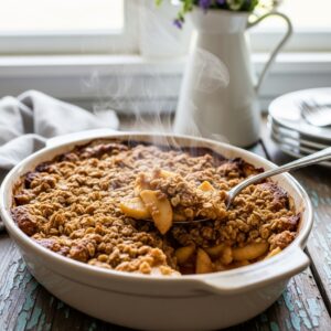 Warm baked apples topped with a crunchy oat crumble — easy and comforting.