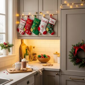 Hang small decorative stockings from the cabinet tops if the design allows.
