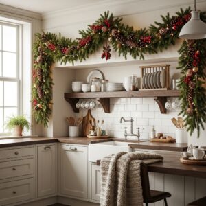 This approach makes the space above your cabinets feel intentional and festive.
