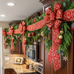 Drape wide ribbon across the top of your cabinets and finish with large bows at corners or intervals.