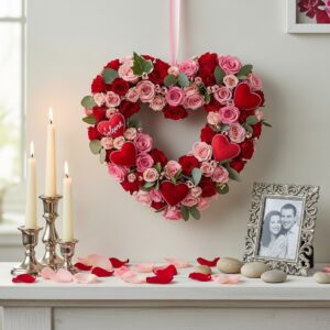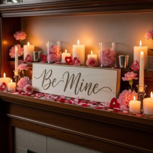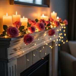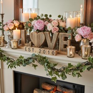 By combining candles, flowers, lights, and heartfelt accents, you can create a romantic focal point that not only celebrates love but also adds warmth to your home.