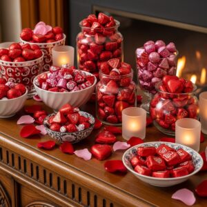 Incorporate Valentine-themed chocolates in decorative bowls or jars on the mantel.