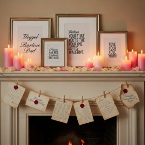 Create a sentimental corner by framing or hanging romantic quotes, love letters, or printed Valentine’s messages on the mantel.