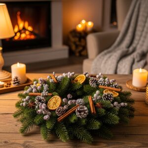 Add small ornaments, dried orange slices, or cinnamon sticks for scent and charm.