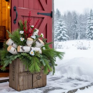 14. Oversized Wooden Crate Winter Arrangement
