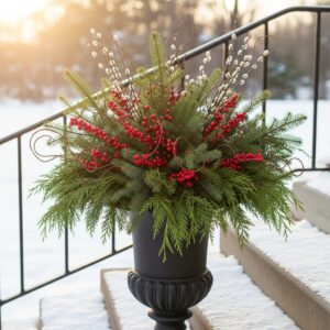 1. Evergreen Porch Urn with Red Winter Berries