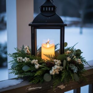 3. Outdoor Lantern with Winter Floral Ring