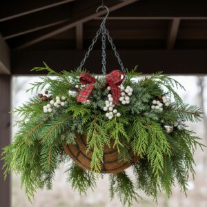 5. Winter Hanging Basket with Evergreens
