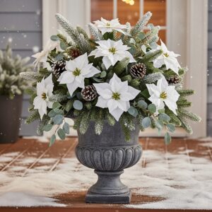 7. White Poinsettia Outdoor Planter (Silk)