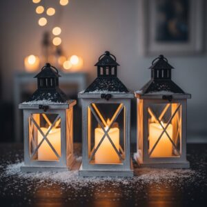 Place LED candles inside white lanterns and sprinkle faux snow around the base.