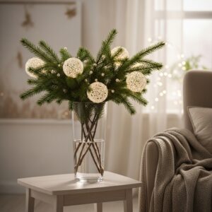 Add hanging snowflakes or tiny ornaments if you want. It’s simple, elegant, and perfect for winter décor.