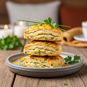 Flaky scones loaded with shredded zucchini and sharp cheddar—great with soups or salads.