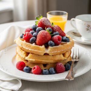 Crispy on the outside, soft and airy inside — perfect waffle texture.
