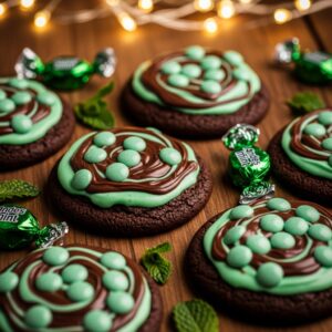 Inspired by the beloved holiday candy, these cookies feature melted Andes mints swirled over warm chocolate cookies.
