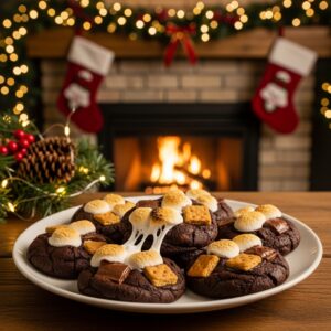 A chocolate cookie loaded with graham cracker chunks, mini marshmallows, and chocolate pieces brings a playful holiday twist to classic s’mores.