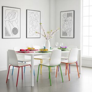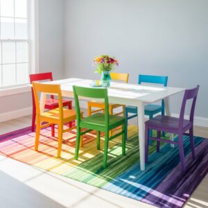 Paint each dining chair a different color, or use a multicolored rug under the table.