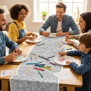 Bring creativity to the dining table with a paper table runner made for coloring.