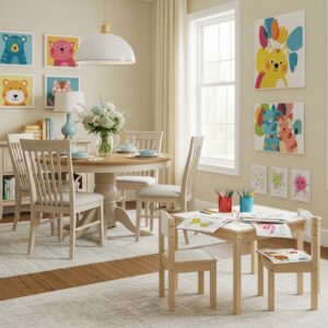If your dining area doubles as a family space, create a small corner for kids to color and play.