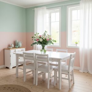 Create a calm and creative atmosphere by painting your dining room in soothing pastel shades like mint green, blush pink, and powder blue.