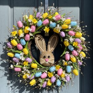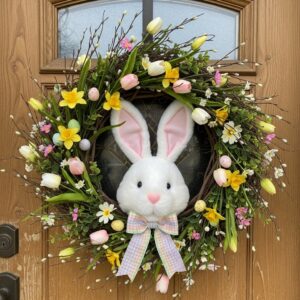 A classic bunny face wreath is timeless and instantly recognizable, making it a favorite for Easter decorating.