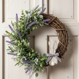 A bunny and lavender wreath blends Easter charm with soothing spring fragrance-inspired design.