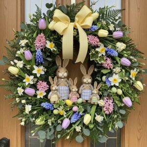 Below are 16 detailed Easter bunny wreath ideas, each offering inspiration, design tips, and styling suggestions to help you create or choose the perfect wreath for your Easter décor.