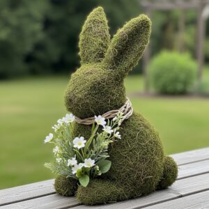 Crafted using faux moss shaped into a bunny form or attached to a bunny-shaped frame, this wreath feels organic and nature-inspired.