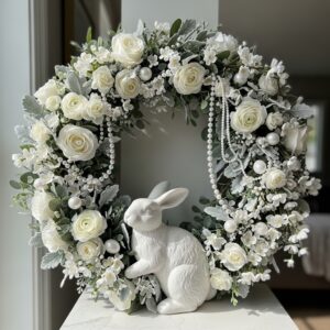 An elegant white bunny wreath is ideal for those who prefer a soft, monochromatic look.