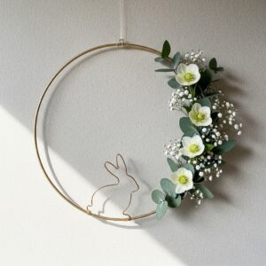 A bunny hoop wreath offers a modern and airy take on Easter décor.