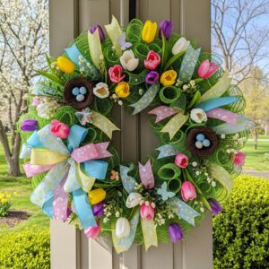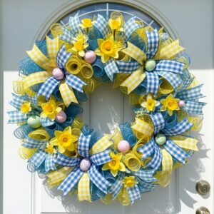 This wreath is perfect for brightening up porches, classrooms, or family spaces and captures the joyful essence of Easter celebrations.