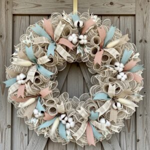 Use burlap deco mesh combined with soft pastel mesh to balance texture and color.