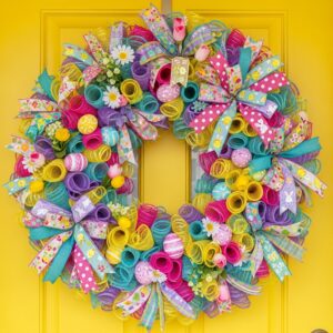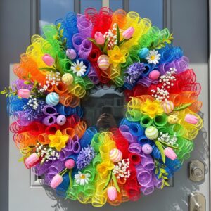An Easter egg explosion wreath is bold, colorful, and full of festive energy.