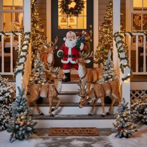 Place life-sized Santa, reindeer, or sleigh figures on the porch or near steps.