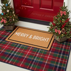 Swap your regular doormat for a holiday-themed mat with sayings like “Merry & Bright” or “Home for the Holidays.”