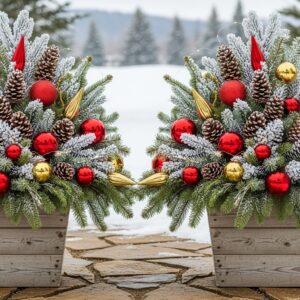 For natural elements like pinecones or greenery, spray them with a light coat of waterproof sealant to help them last longer in rain or snow.