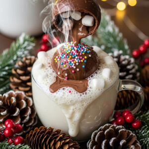These chocolate spheres are filled with cocoa powder and marshmallows and melt into a rich drink when hot milk is poured over them.