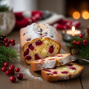 This festive loaf cake is studded with cranberries and white chocolate chips, making it a colorful addition to your holiday table.