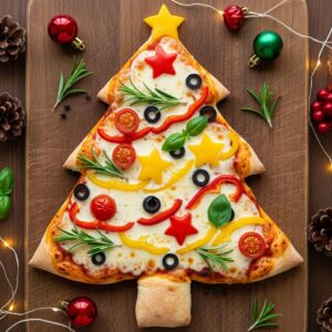 Arrange dough, cheese, and toppings in a tree shape for a fun and shareable meal.
