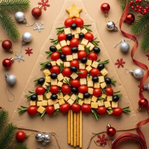 For a savory option, shape a variety of cheeses and veggies into a Christmas tree. Perfect for holiday parties.